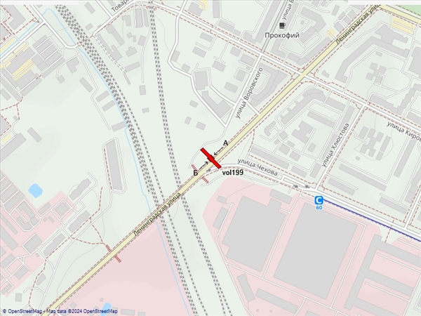 Ленинградская ул., пересечение с ул. Чехова, въезд на мост, справа при движении из центра
