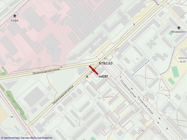 Ленинградская ул., 101, у супермаркета "Макси", 50м до пересечения с ул. Псковской, справа при движении в центр